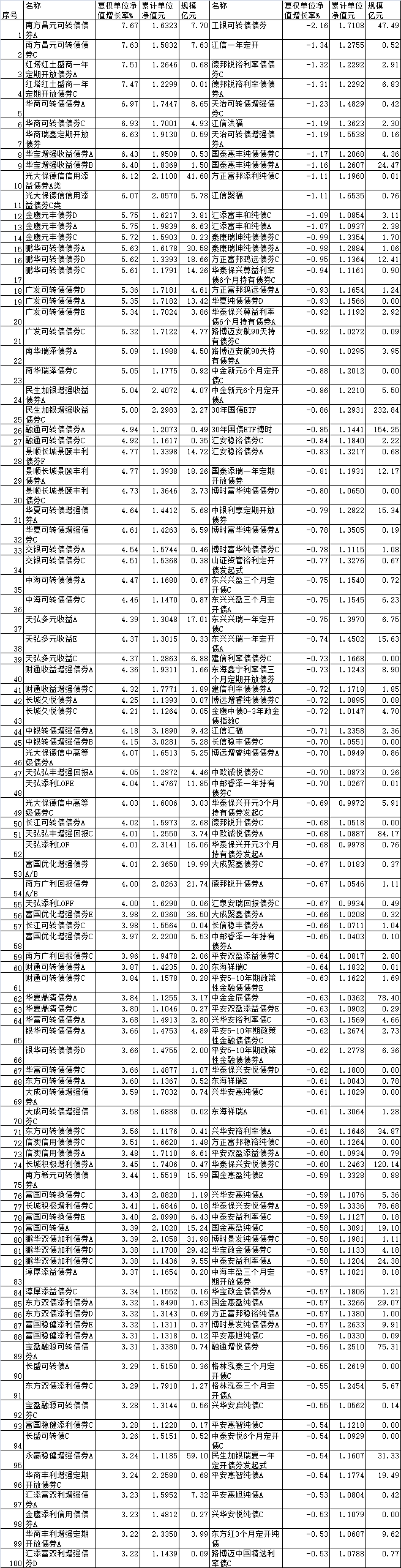 China Economic Net, Beijing, August 5 (Reporter Kang Bo) by the end of July 31, after excluding bond funds with an abnormal net value, among 7,217 bond funds with comparable performance (calculated separate 173 remained the same, and 2,5555 fell. Nanfang Changyuan convertible bond bond a, nanfang changyuan convertible bond bond c, hongta hongtu shengshang one-year-old regular opening债券A Hongta Shengshang的债券C定期在最高奖金中排名7.67%,7.63%,7.51%和7.47%的债券。 10年的管理经验在第二季度,南昌旺债券的前五名持有人是转移2的债券,工业可转换债券,长22个可转换债券,中国南部航空公司可转换债券和Ruichuang敞篷债券。还有一些股票资产,其中排名前十的股票是内部蒙古Yiji,Xinyuan Micro,Fudan Microelectronics,Guangdong Hongda,Guito Technology,Dinglong Co.,Ltd.,Ltd.,Shengbang Co.,Shengbang Co.年轻球员杨Xingfeng管理的一年 - 洪图·洪图·尚申邦德。 Nagrhe从2006年7月至2007年11月加入了天装投资咨询公司,从事房地产行业的研究;从2007年12月到2012年3月,他曾在Teda Hongli Fund Management Co,Ltd工作,该公司担任特别帐户投资的助理经理; 2012年4月,他加入了Securities Co,Ltd的创始人,并担任IN的高级研究员Stitute的方法。 Join Hongta Hongci Fund Management Co, LTD in April 2019. The top five bonds held in the second quarter are all Treasury bonds, and the top ten heavy -held stocks include Gaozheng Minbao, Tibet Tianlu, Avic Shenfei, Xiaofang Pharmaceutical, Sanxiang New Materials, China Taiping Insurance, Tiannai Technology, Laobaixing, Hongruan technology, and SMIC.此外,Huashang Convertible Bond A,Huashang取代了债券C,并由Zhang Yongzhi运营的Huashang Ruixinregly Open Bond上涨了6.97%,6.93%和6.63%的债券。根据数据,张宗奇(Zhang Yongzhi)积累了14年的公共基金管理经验。从1999年9月到2003年7月,他担任店员和部门负责人;从2006年1月到2007年5月,他在债券部门担任商人;自2007年5月以来,他于2007年5月加入了Huashang Fund Management Co,Ltd,并担任商人,资金和基金经理。他目前是副总经理固定收入部门的ER和提供商业企业委员会委员会的上市公司的成员。从第二季度的手柄来看,大量处理张宗奇的大部分债券将改变债券,包括可以通过PUFA改变的债券,可以由Huaan代替的债券,Bengang,Chongyin -Converible Convertible Converts可以更改的债券以及工业债券可以更改债券。 The stock assets he holds are mostly low -value stocks, such as the Fangda Special Steel, Luoyang Molybdenum Industry, Xingang Co, Ltd. Bond funds that fell more than 1% in July, such as Jiangxin one-man fixed-term, Ruiyu interest rate rate, Tianzhi convertible bond enhanced bond, Jiangxin Hongfu, etc. Most of these funds hold financial bonds.从一年四季的江外前五个重型债券来看,他们持有25个超长特殊财政债券01,24特别财政债券05,23债券债券债券23。资料来源:Tonghuashun(比例截止日期:2025年6月30日)