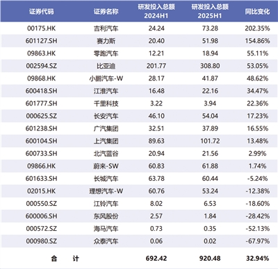 18汽车公司的研发投资数据来源:Tonghuashun Ifind(单位/十亿人民币)绘图:郭金兹在汽车旅客市场凶猛的时候,上市的汽车公司正试图在R&D投资水平和投资之间找到平衡。根据9月2日的Tonghuashun Ifind的数据,今年上半年的R&D的总投资(R&D +大写的R&D支出的昂贵R&D支出)在今年上半年透露,该公司的总投资(共享 + H股)的总投资是9204.8亿Yuan,一年一年的32.94%增加了32.94%。受汽车公司盈利能力等因素的影响,汽车公司的研发投资强度不同。在统计数据中包括的18家公司NG汽车公司中,12个汽车公司的研发投资已达到逐年增长,价值66.67%。 r&D投资公司,例如Geely Automobile(00175.HK),Cialis(601127.sh)和LeapMobile Automobile(09863.HK),将汽车公司的研发投资排名最高,而Great Wall Motors等汽车公司的R&D投资则排名最高,而Gifter Cars(601633.sh),Perfect Car)(完美的汽车)(02015.HK)(5岁)。在经济参考访谈中,北京的一位老车辆专家,我国家的车辆行业处于智能变化的关键时期。一方面,汽车公司将需要继续投资研发,以防止其最新的竞争对手在比赛中,同时面对运营运营的压力。这很难使汽车公司的财务稳定性和战略性确定。 “情报”一直是研发投资的重点。目前,在科学和技术革命和工业变革的新循环的背景下,电气化导致车辆行业朝着数字化,网络的方向发展和智力。汽车公司增加了研发投资,以争夺智能连接的车辆生态系统的主导地位。通常,在今年上半年,18辆汽车公司的研发投资价值在2000万元至309亿元人民币之间,平均为5.114亿元人民币,中位数为39.88亿元。与2024年上半年相比,两个指标分别增加了32.94%和76.56%。就绝对价值而言,BYD排名是R&D成本的第一名。在今年上半年,BYD的研发投资达到308.8亿元人民币,增加了53.03%,这主要是由于员工薪水和物质消费量的增加。在智力方面,BYD强制执行“智能工具”的方法,并建立“上帝之眼”的技术矩阵。它的所有车型都配备了先进的驾驶技术。由R&D Inves酌情决定吉利汽车在上半年的增长率最快。该公司在本赛季的研发投资达到73.28亿元人民币,增长了202.35%。吉利汽车(Geely Auto)表示,严格促进新的能源智能方法AIT不会为其对汽油车,插电式混合动力汽车,纯电动车辆和智能技术的全面利益提供全面利益。该公司在人工智能领域的全面布局将进一步增强其在产品研究,业务开发和运营方面的竞争力。 JAC电动机在今年上半年的总研发投资为221.6亿元人民币,增长了34.4年前7%,占营业收入的11.44%。在报告期间,该公司专注于四个主要领域:车辆集成,应用层开发,基本发展和绿色和低碳制造技术开发,并促进了所有人的现代技术方面。但是,许多汽车公司的研发投资在一年中已大大下降。 R&ddongfeng Co Investment,Ltd(600006.sh)的1.84亿元人民币,降低了28.42%; Haima Automobile(000572.SZ)的R&D投资为349.11亿元人民币,年度下降了52.13%; Zotye Automobile(600006.sh)的R&D投资为19.96亿元人民币,年度下降了69.97%。就R&D投资(R&D投资/营业收入)的比例,Baic Blue Valley(600733.sh),米彭汽车(09868.hk),JAC Motors和其他公司属于最高。研发投资与BYD,GAC Group(601238.SH),Changan Automobile(000625.SZ)和其他公司在2023年,2024年和2025年上半年继续上升。车辆公司面临困境。在今年的上半年,18个汽车公司的总营业收入总计12.29万亿元,增长了55.41%,与MG股东Liste相关的净收入总数D公司为26008亿元人民币,同比下降9.27%。经济委员会记者指出,各种汽车公司已经采用了不同的会计方法来进行研发投资,一些汽车公司的资本化研发支出众所周知。例如,在今年上半年,GAC集团的研发支出为37.89亿元人民币,其中资本化的R&D支出高达32.96亿元人民币,R&D的资本化支出将耗资近87%。 The company's current revenue is 42.166 billion Yuan, a year-to-year decline by 7.95%, and the net profit linked to shareholders of the listed companies are -2.538 billion yuan, a year-to-year reduction of 267.39%, and the net profit linked to shareholders of the listed companies after reducing 771.11%.该公司在此期间总共获得了801,700辆汽车和755,300辆汽车,下降了6.73%和12.48%。其中,新能量汽车的销售ICLES为154,100个单位,同比下降6.08%;节能车辆的销售额为211,600辆,增加了13.43%。例如,Haima Automobile,该公司在今年上半年的研发支出为349.11亿元,而R&D的资本化支出为202.112亿元人民币,而R&D在R&D支出上的资本化R&D支出的比例为几乎58%。 Haima Automobile今年上半年的营业收入同比增长9.89%,但其净利润与上市公司的股东同比增长了50.85%,其损失显着增长到-74.5191百万元。但是,一些汽车公司在处理PR&D Aggasa方面相对谨慎。该集团(600104.SH)在今年上半年的资本化研发支出为2006亿元人民币,而R&D的资本支出将占研发支出的19.72%。今年上半年的BYD费用为295.96亿元人民币,研发的资本支出仅占研发支出的4.16%。有一个经纪人,通常拥有大量资本化研发支出的公司将大量的研发支出将大量的研发支出更改为不利的未来所有权。由于它们不包括在当前成本中,因此这种过渡可以显着平滑收入的短期波动,并使财务报告更好,但它也会带来未来的残疾风险。尽管汽车公司对研发的会计处理有不同的动机,但他们面临着“如果不投资,他们将跌倒,如果投资,他们将拖延他们的绩效”。 Minsheng Securities认为,汽车公司面临着持续的价格竞争,其盈利能力处于压力下,并且竞争领域已从价格扩展到诸如设计,技术和情报等全面的品牌竞争。面对高度竞争BYD董事长Wang Chuanfu表示,由于其在技术上的毅